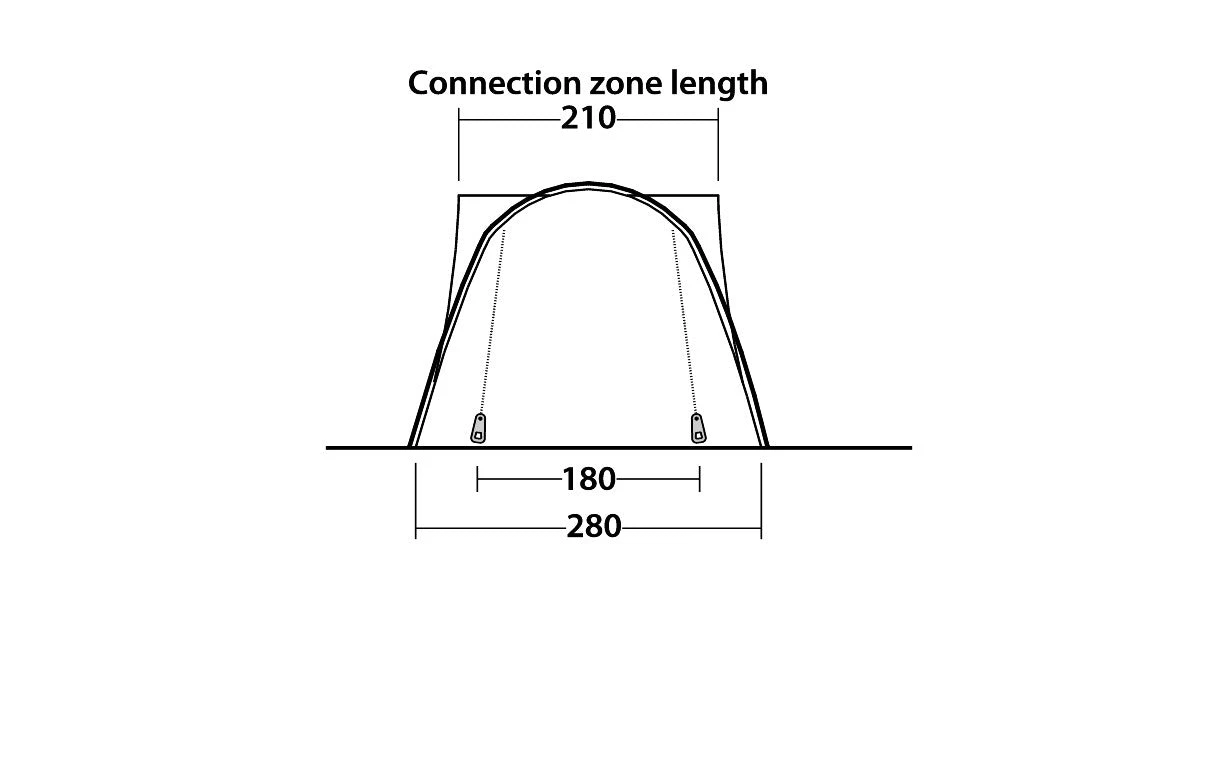 Pre-angled fibreglass poles maximise the space and headroom of the Fairfields awnings. Fitting snugly to host vehicles with a height of 180cm-210cm, it can be quickly and easily attached or detached to be left freestanding. Above the large front door, weatherproof ventilation opposite the vehicle access door offers airflow. A toggle-up detachable groundsheet and large side window add flexibility.