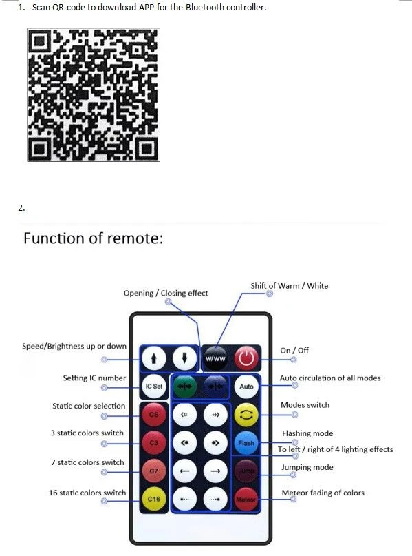 3 Ways Control & Easy Setup: You can enjoy most of the functions through the 24-key remote control, USB controller, such as change colors, adjust brightness and speed, music sync, etc. Also you can download the APP, one-step bluetooth connection provides you with more advanced control DIY colors, custom lighting effects, create schedules, group control, etc.