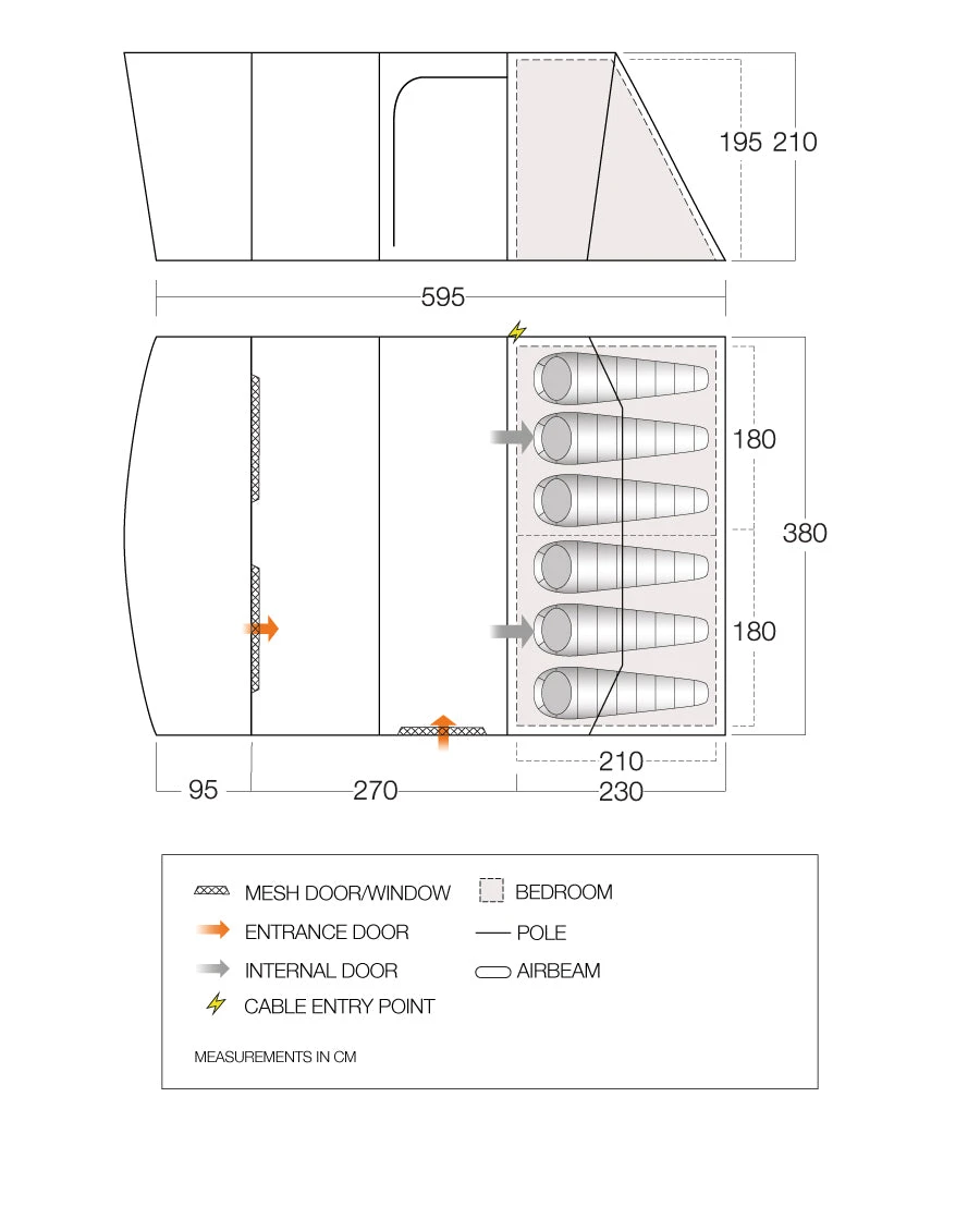 - Vango AirZone – High and low level ventilation panels combine to create a comfortable flow of air through the tent. Air circulation is essential for reducing condensation